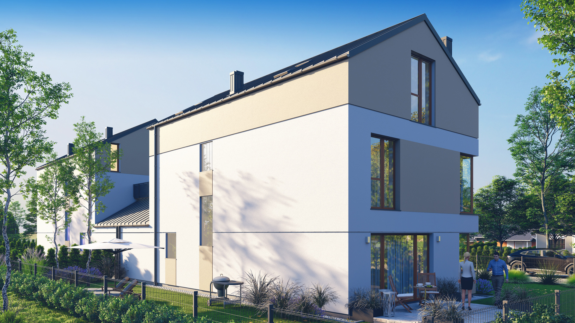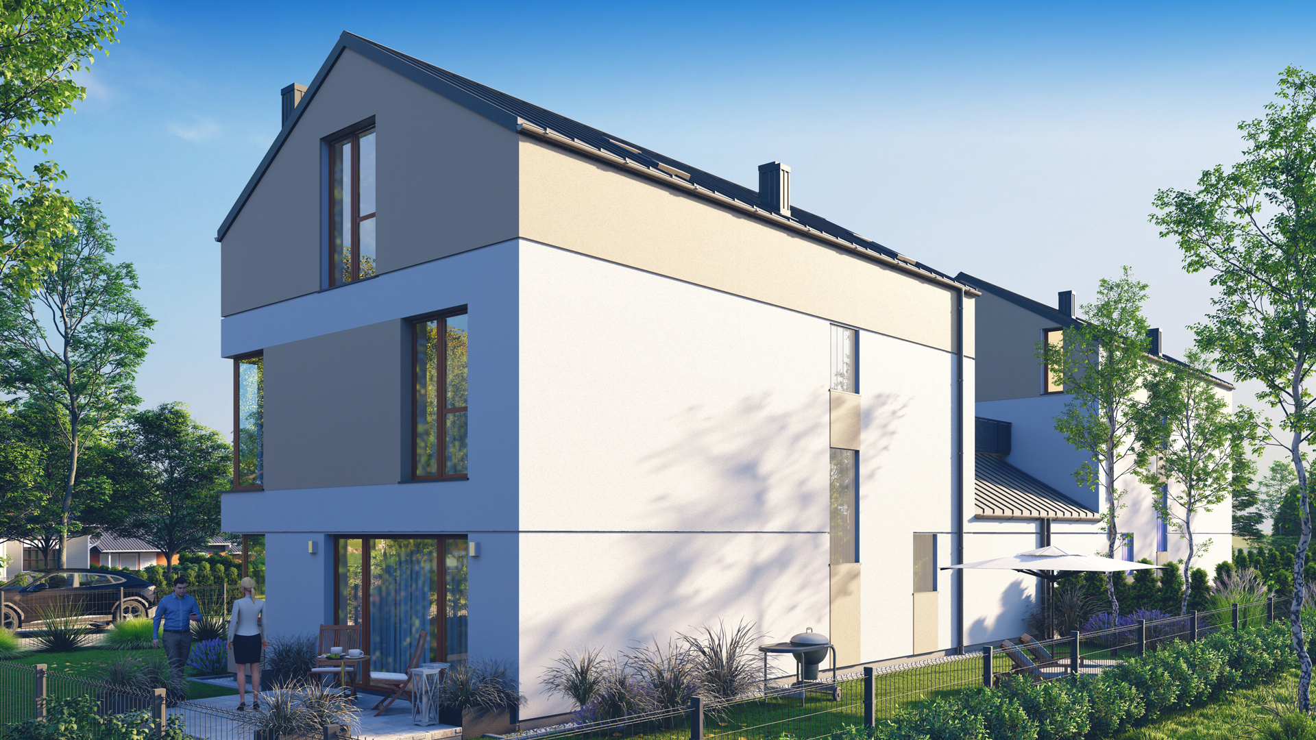 Ogromnym atutem jest również duży, wygodny garaż na dwa samochody oraz obszerne pomieszczenie gospodarcze, idealne na rowery, sprzęt sezonowy czy warsztat.